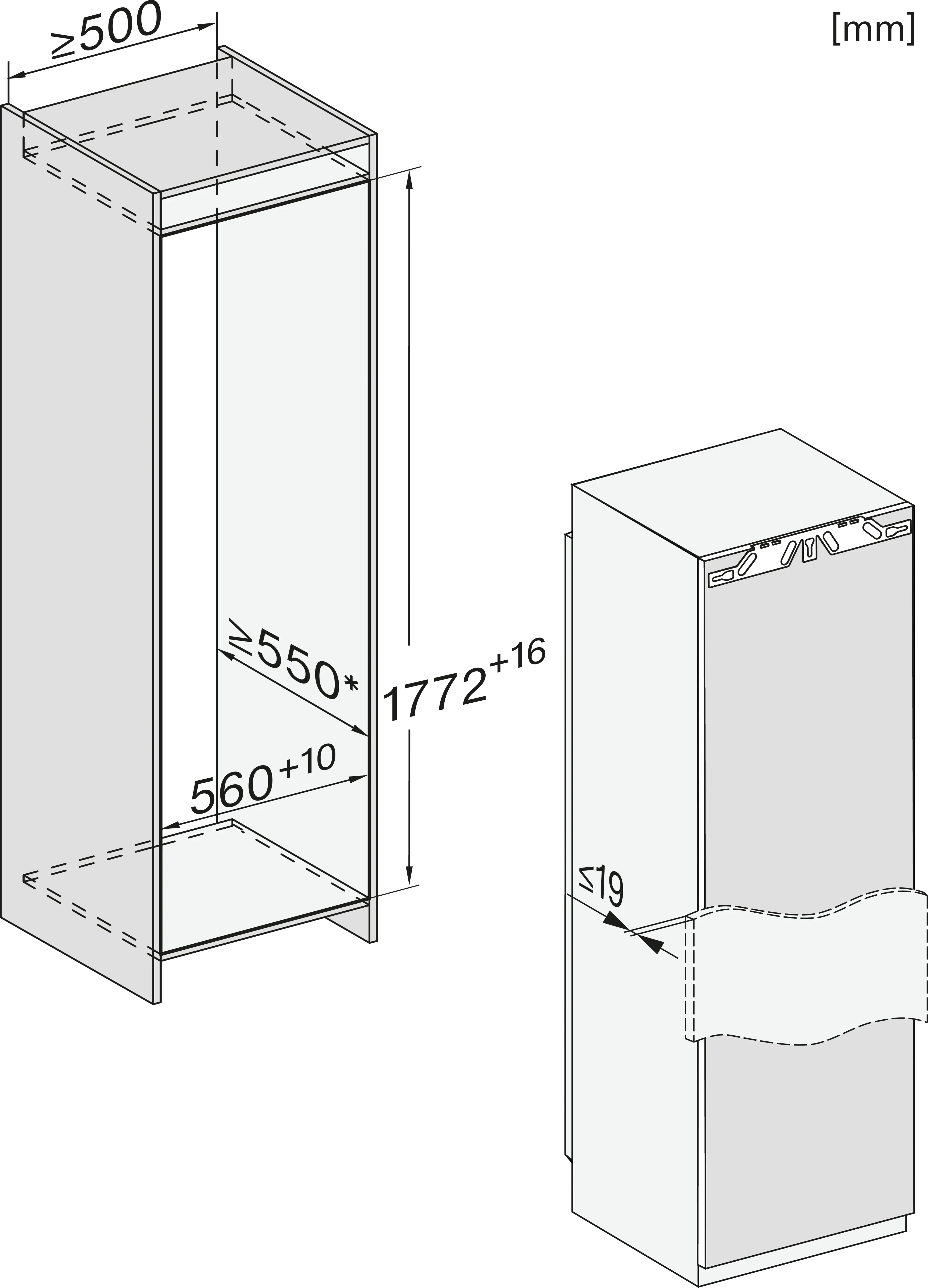 Установка встраиваемого бытового холодильника/морозильника